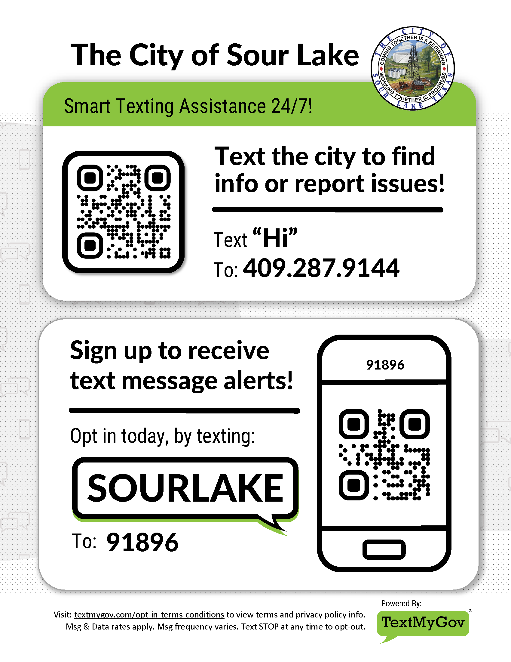 Text “sourlake” to 91896 to receive Town-wide Notifications
